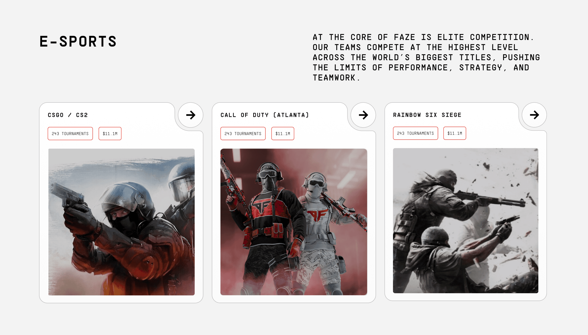 FaZe Clan is a global esports and entertainment brand known for blending competitive gaming with internet culture, lifestyle, and streetwear.