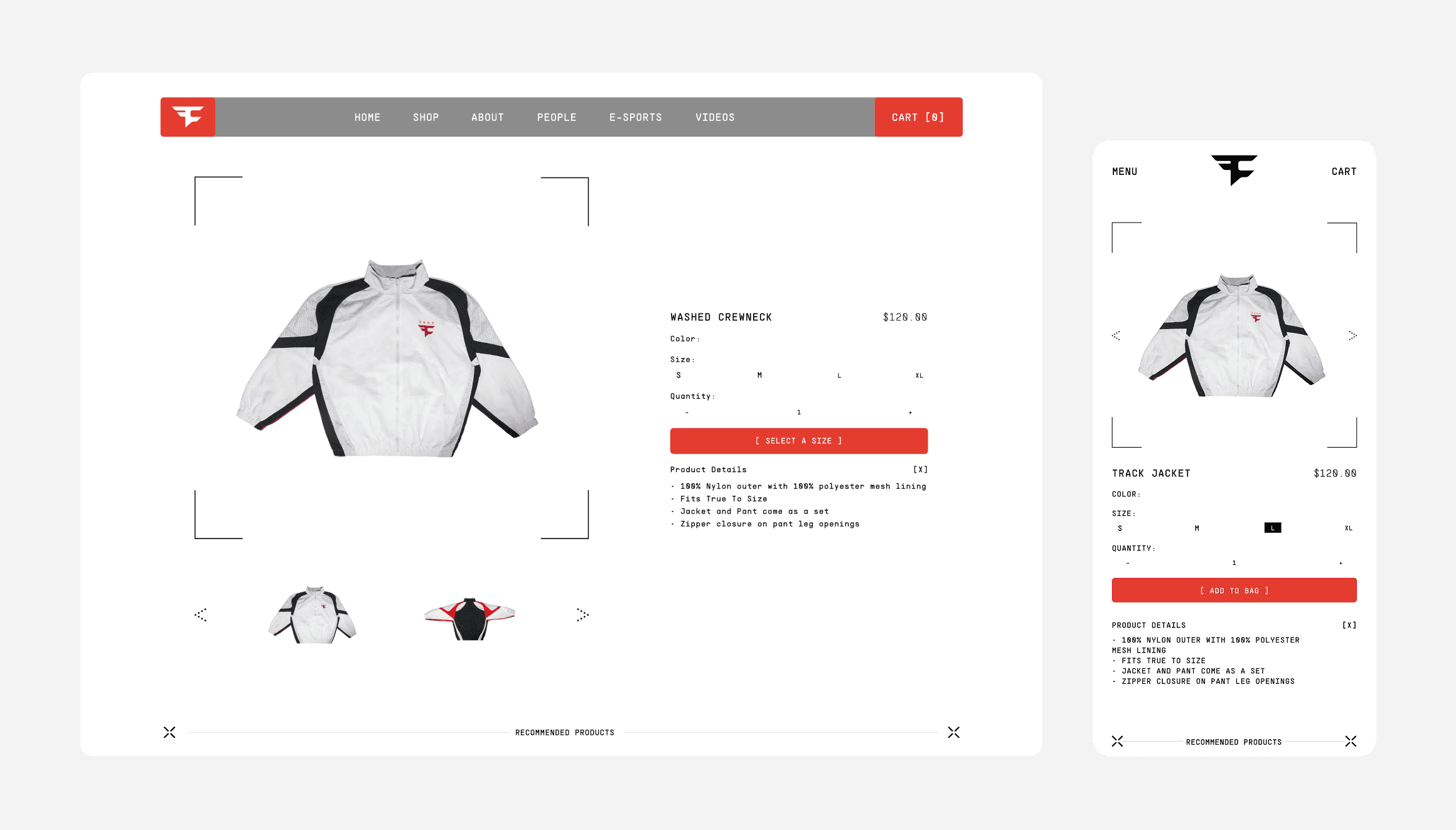 I led the design of FaZe Clan’s new e-commerce website, building an experience that reflects the brand’s intensity and influence. The final product balances bold visuals with intuitive UX, paying homage to FaZe’s culture while elevating their digital storefront.